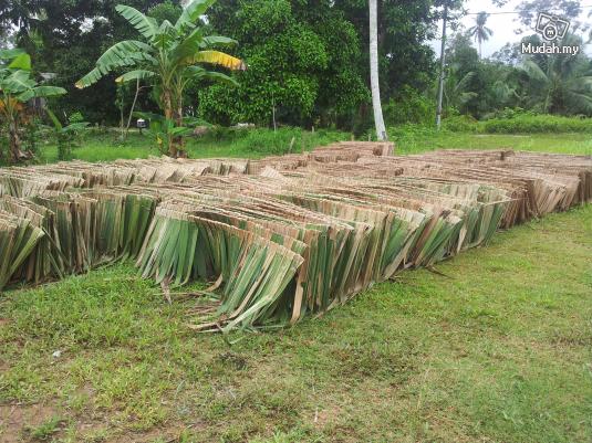 Daun nipah yang di potong akan di semat menjadi atap nipah